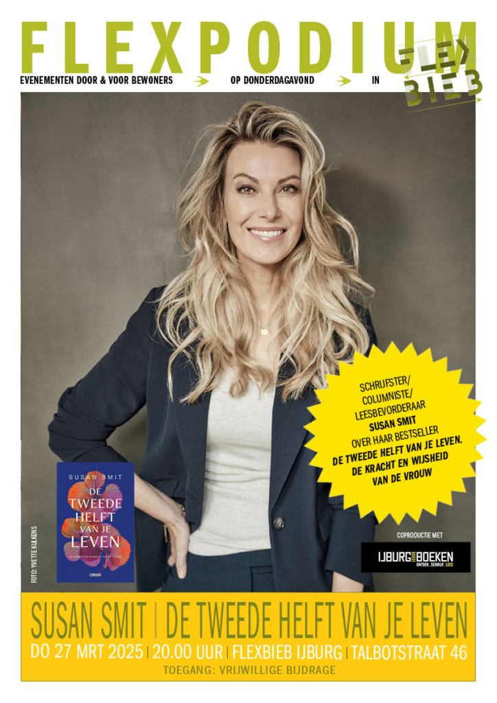 Vanaf je veertigste stap je in een volgend hoofdstuk. Via haar boek De tweede helft van je leven (okt. 2024, uitg. Lebowski) nodigt Susan Smit je uit om je weerstand tegen ouder worden te laten varen. De tweede levenshelft wil je namelijk naar een bestaan leiden waarin je loslaat wat niet meer voor je werkt en waarin je de wereld brengt wat je ten diepste te bieden hebt.