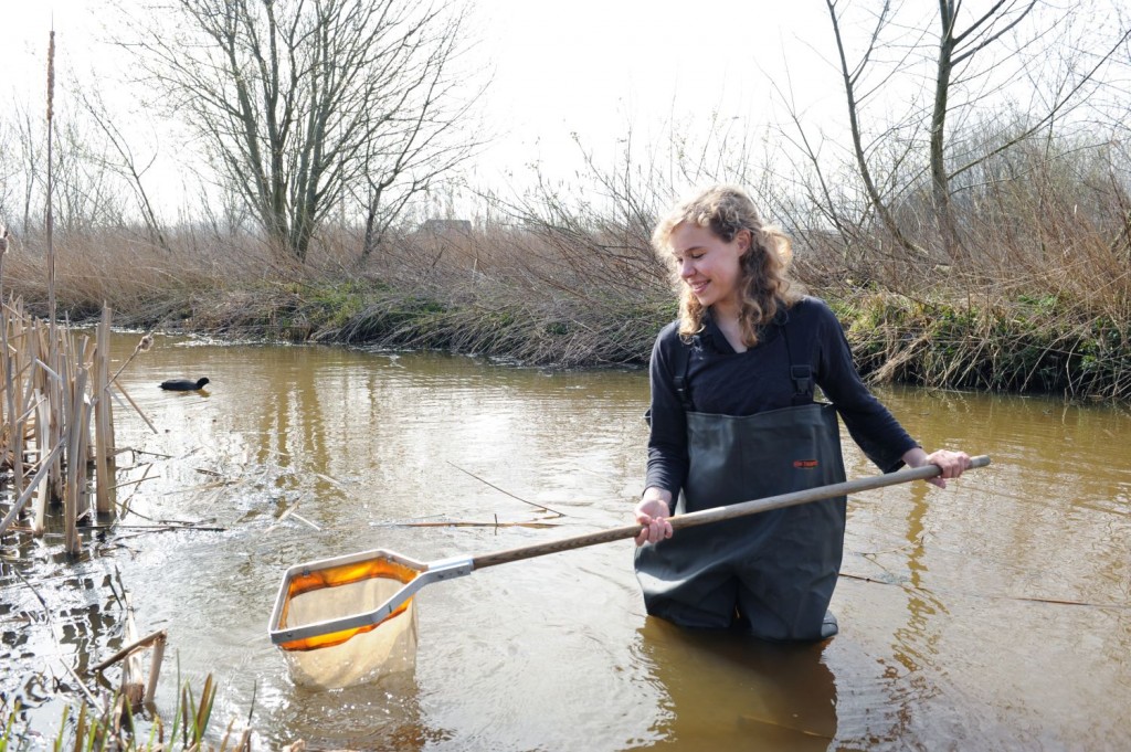 Yente, eerstejaars student psychobiologie, wijst naar de wuivende pijpenstrootjes. “Nu is het landschap heel eentonig. In september zal de gemeente met een graafmachine de grond bewerken. Door de oevers minder steil te maken, krijgen bijvoorbeeld planten als watermunt, gele lis en misschien zelfs waterdrieblad een kans.” Nadat de grond bewerkt is, zal de natuur zoveel mogelijk met rust worden gelaten. Wel zal een pad de bezoekers de mogelijkheid geven door het gebied te wandelen.