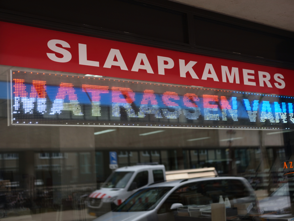 Eén keer gingen we naar de Bilderdijkstraat naar een ‘beddenpaleis’. Daar moest je begeleid proefliggen, geholpen door de verkoper. Hij kon zien of het matras bij ons paste of niet. Gek genoeg paste het duurste matras het beste bij ons.