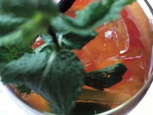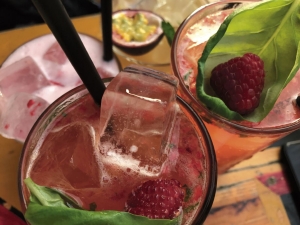 Henry’s bar, de eigenlijke cocktailbar ernaast, is nog niet open, maar toch worden speciaal voor ons cocktails bereid. En een kan water met frisse schijfjes citroen neergezet. Dat is best nodig, want we worden toch wat licht in het hoofd. Hier kosten de cocktails €10,95. Toegegeven: Slam Poetry, New Mexico, dat klinkt allemaal veelbelovend. De hapjes zijn goed, vooral bij de geitenkaaskroketjes likken we onze vingers af. Het duurt wel even voor de cocktails komen: hier wordt serieus werk van gemaakt. Intussen lurken wij gulzig van het water. Een nieuwe kan wordt alweer gebracht. Over de prachtig opgemaakte cocktails zegt het panel: “Ze zijn heerlijk, maar ook een beetje als ranja.” Lekker zoet dus.