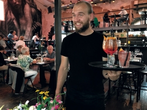 Vier cocktails weggetikt en de man onder ons komt nu lekker op gang.