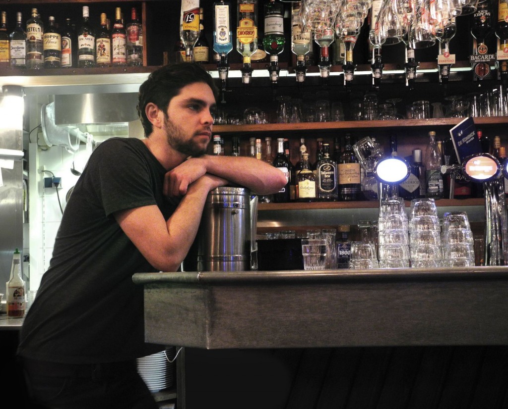 Guitig koppie daar achter de bar. Hij weet van wanten, kent de klanten. Heeft overzicht, een goeie rechtse (voor de tap) en ook wel even tijd voor een gesprekje, tussen de bedrijven door.