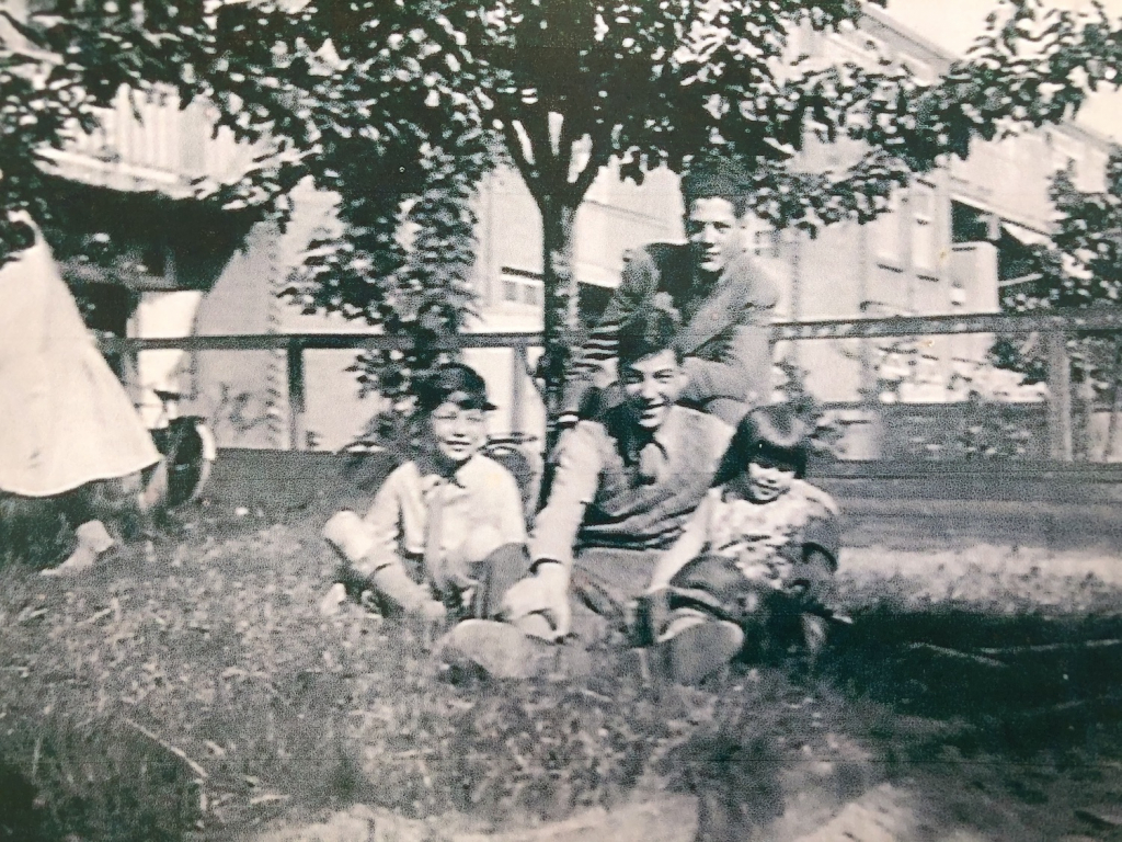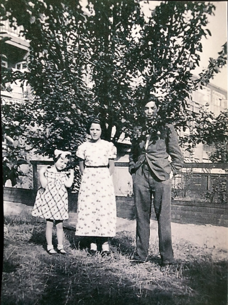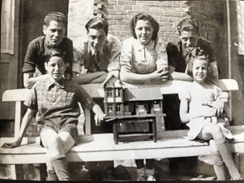 Hetty vertelde dat zij de enige overlevende was uit de familie die ooit in ons huis woonde. Ze was de jongste dochter uit een gezin van twee ouders, twee zussen en vier broers. Aan het begin van de oorlog was ze 8 jaar oud. Ze had nu kopieën van oude foto’s meegenomen waarop het gezin stond afgebeeld op allerlei plekken in en rond het huis, vaak met de toen nog kleine perenboom in het midden van de tuin als centraal herkenningspunt. Op de foto’s kon je ook goed de achtergevels zien van de huizen zoals die nu nog herkenbaar zijn. In de late jaren 30. En toen veranderde alles dramatisch.