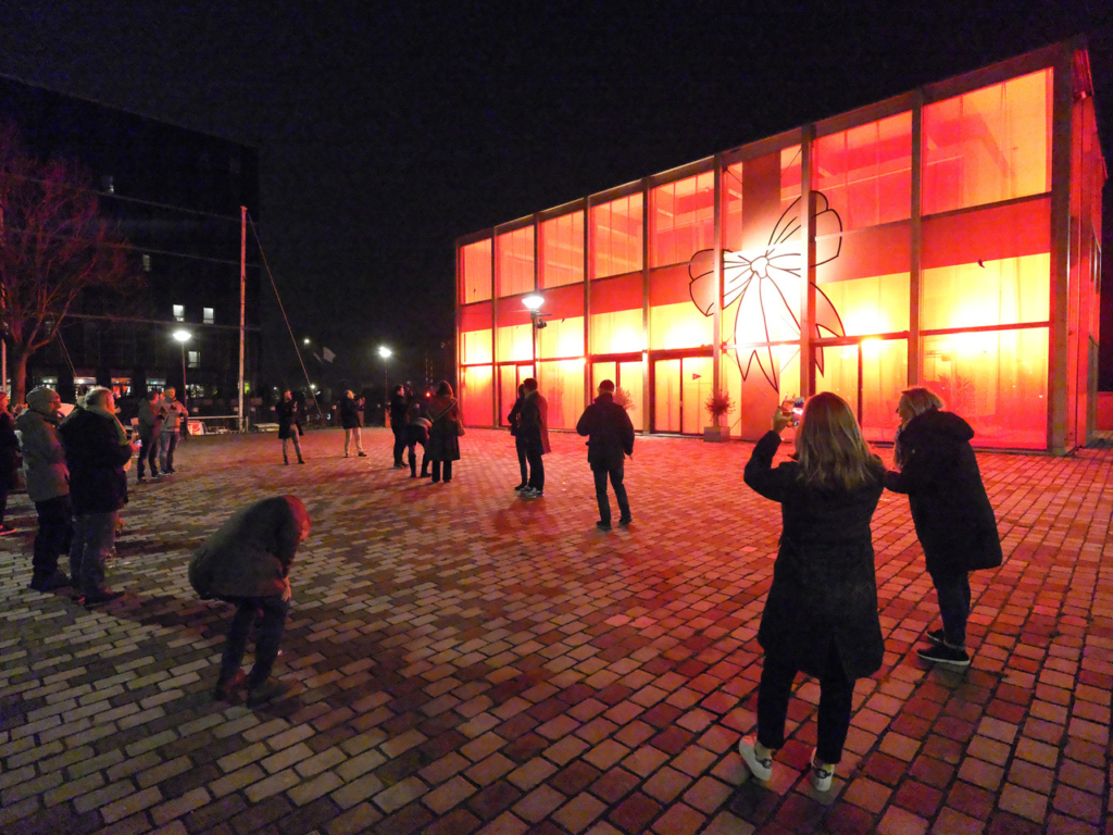 De haven IJburg staat in het licht. Op initiatief van BIZ Haven IJburg is woensdag 2 december om 19.00 uur op gepaste afstand en in bijzijn van zo’n twintig ondernemers en belangstellenden de strik onthuld en werd er geproost. Voorzitter Roel Geijssen van N.A.P.: “Altijd komt de Sint aan in de haven van IJburg, die traditie is ons dit jaar door de neus geboord, we hebben duizenden kinderen en hun ouders moeten teleurstellen. Dit is een gebaar naar hen.” Mede-initiatiefneemster Ingeborg Vink vult aan: “Het is zo ontzettend balen dat er zo weinig kan. Dit is een klein cadeautje naar alle inwoners van IJburg en omgeving. Wij hopen hiermee ook de haven aantrekkelijk te houden, kleur en gezelligheid te brengen. Het is hier nu een stuk rustiger dan normaal, de ondernemers hebben het niet gemakkelijk.” Michiel van DOK48 broedt op een groot ‘terugkomfeest’, die wat hem betreft – als het weer mag – enkele dagen mag duren. De ondernemers slaan dan net zoals nu de handen ineen: “Dan vieren we de vrijheid.”