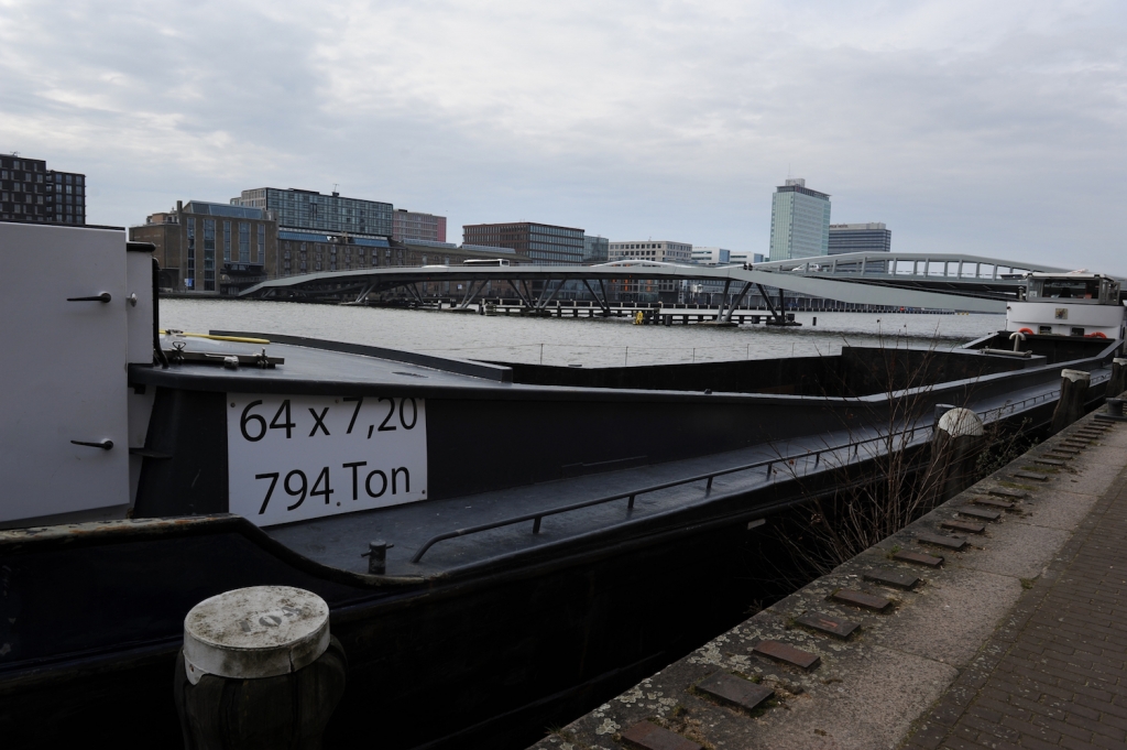 Om met de brug op het gat in het pakhuis aan te komen is de brug laag gehouden. De constructie is verborgen in de vorm: vakwerkliggers liggen als spieren onder de huid van het reptiel. Er is heel goed nagedacht over het functioneren van de brug: voetpaden en fietspaden komen aan op de kades vlak onder de brug. De oprit voor autoverkeer is compact neergelegd zodat de infrastructuur niet te veel ruimte inneemt. Gebouwen staan vlak langs de brug en de weg, waardoor de intieme sfeer van Java-eiland intact blijft. Dit is een heel goede brug, hopelijk een inspiratiebron voor toekomstige bruggen over het IJ.