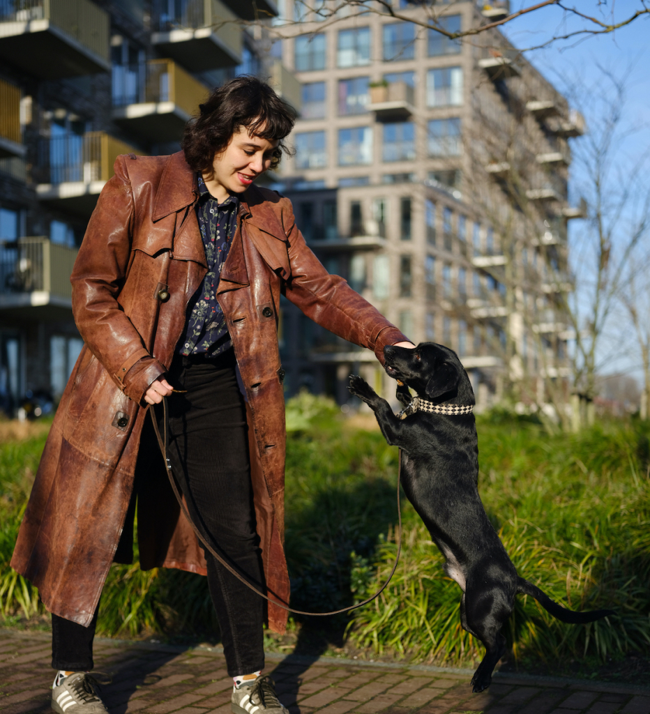 Eigenlijk zouden we bij Haddock op Zeeburgereiland afspreken, maar dat blijkt die dag dicht. Door de wijk-in-aanbouw, langs de bouwplaats, lopen we naar koffiebar Nuttig. Hondje Atari, een mengsel van een teckel en een labrador, twee jaar geleden via een zwerfhondenorganisatie uit Cyprus overgekomen, vergezelt ons. Schrijfster Kira Wuck woont met haar vriend, kat en hond op Zeeburgereiland. Ze groeide op in de Dapperbuurt, Javaplein en Oostelijke Handelskade.