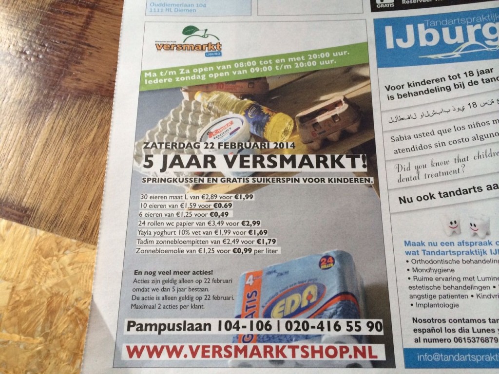 De Versmarkt is zeven dagen per week geopend en beide eigenaren werken dan ook zo’n 80 uur per week. Hoewel het thuisfront wel eens moppert, vinden ze het zelf niet meer dan logisch. “IJburg is geen gemakkelijke buurt voor ondernemers. Ga maar na, alleen al aan huur zijn we elke maand een paar duizend euro kwijt. Maar ik klaag niet. Ik ben jong, zie kansen. Als ik harder werk, kan ik verder komen.”