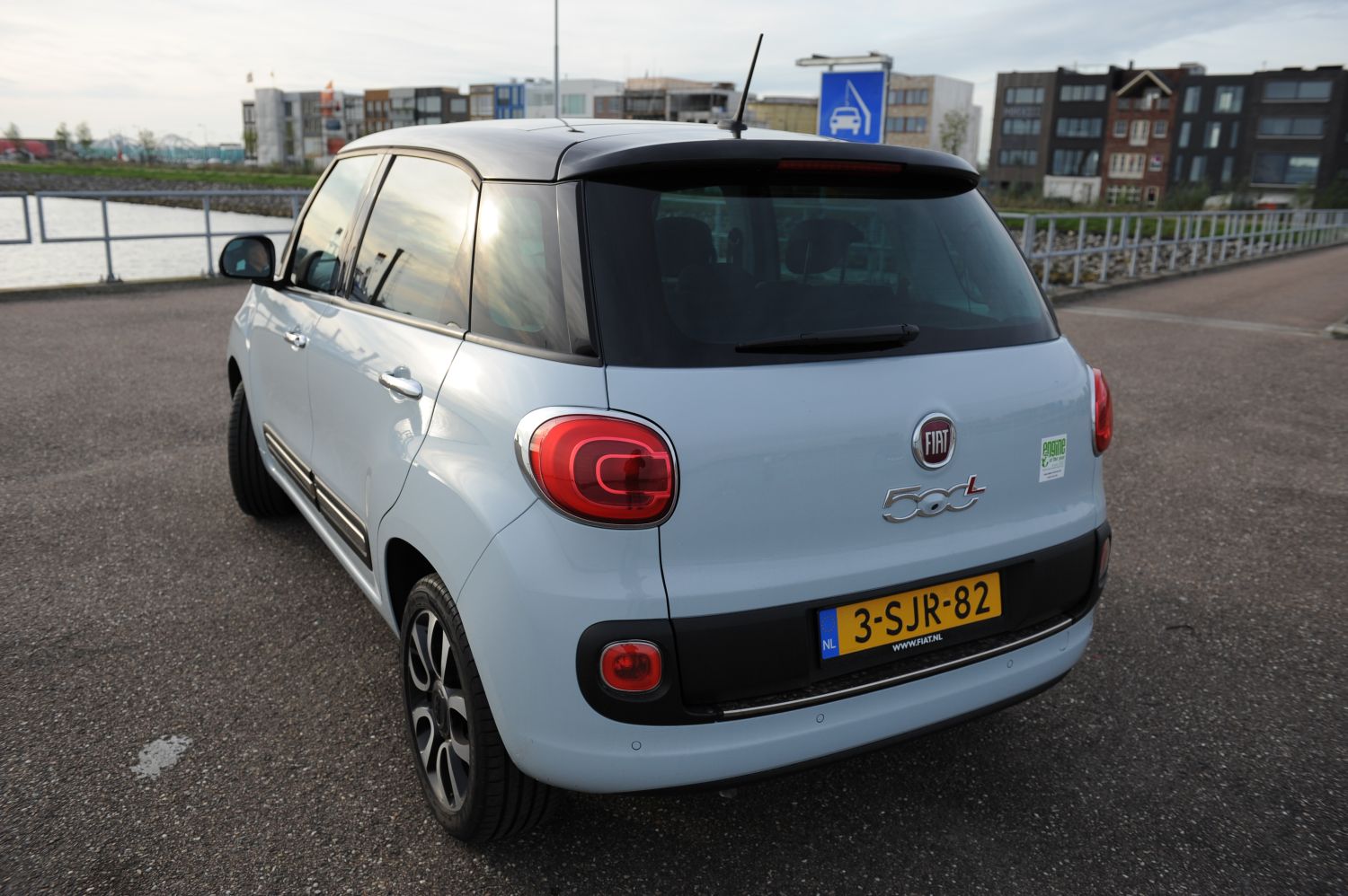 De ‘L’ achter de type aanduiding 500 staat voor ‘Largo’ en de Fiat 500L is dan ook de grotere broer van de normale ‘baby’ 500. De auto is een MPV uit de compacte C-klasse met als voornaamste concurrenten de Citroën C4 Picasso en de Opel Meriva. Het moet direct gezegd, de 500L is inderdaad heerlijk ruim. Zowel voor als achter hebben passagiers alle ruimte van de wereld. De bagageruimte heeft dankzij de verschuifbare achterbank een variabel volume van 412 tot 455 liter dat bij een (eenvoudig) neergeklapte achterbank groeit tot maar liefst 1.480 liter, groot genoeg om probleemloos een wasmachine te vervoeren.