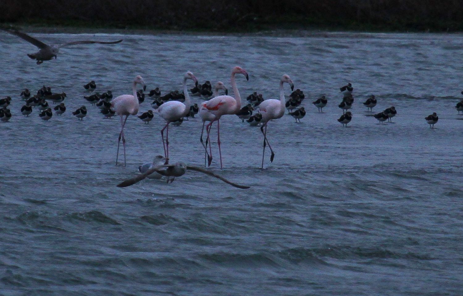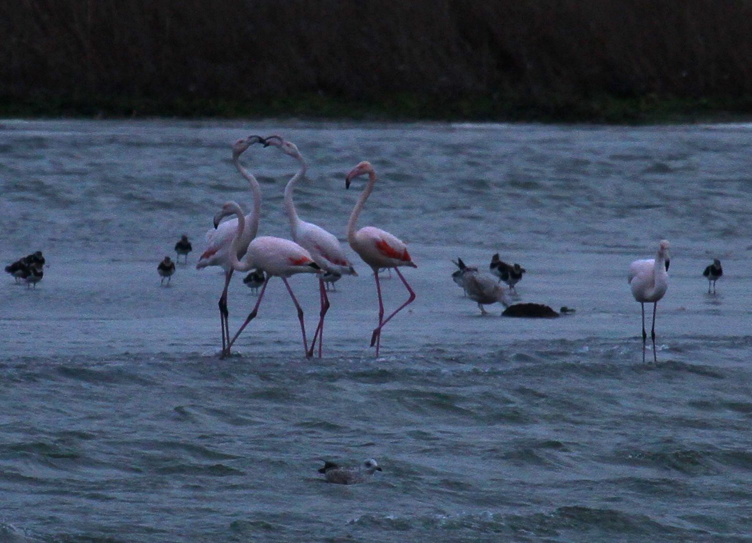 Sinds zondag 18 januari 2015 huizen er wilde flamingo’s in de Kinselbaai tussen IJburg en Durgerdam. Dat is bijzonder, want deze vogels komen in het wild niet veel in Nederland voor. Bob van den Broek legde ze met zijn camera vast. Het gaat om een groep van vijf vogels: twee volwassenen en drie jongen. Ze zijn waarschijnlijk afkomstig van een populatie uit Zuid-Frankrijk (Camargue).