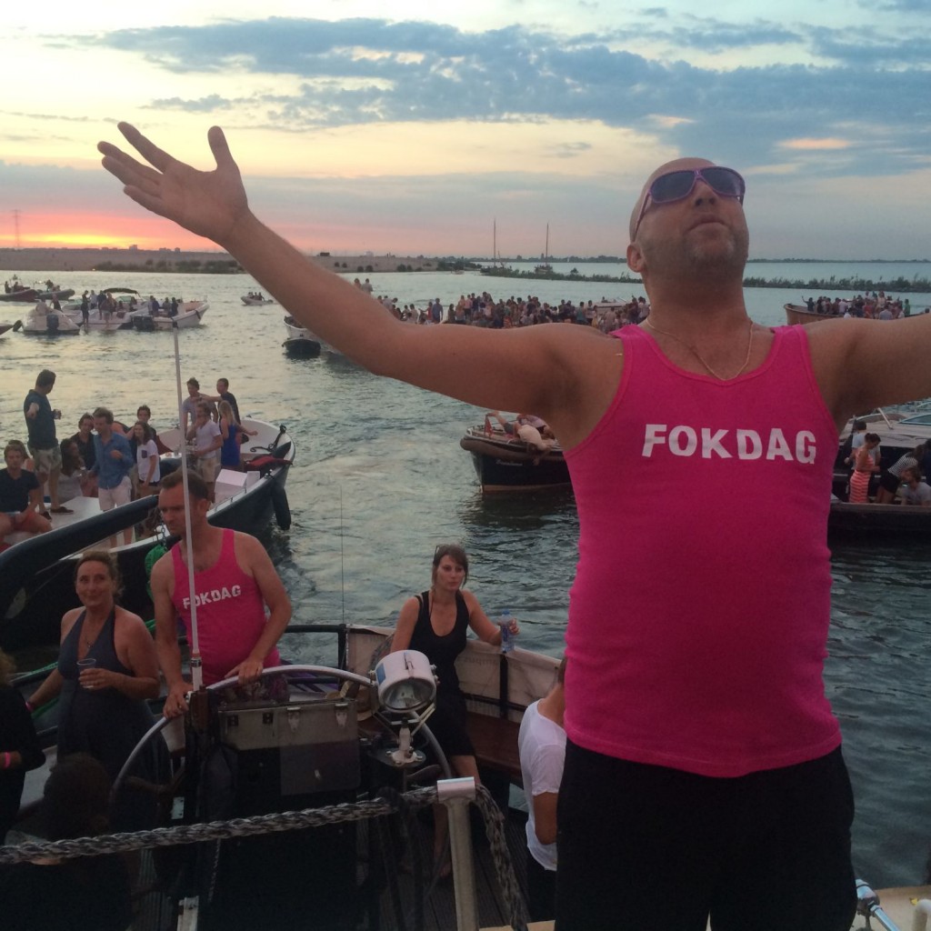 Zaterdag 4 juli 2015, feestvaren op de Oostelijke wateren. Dansen op het dek van de Sailboa met DJ’s Ruben van der Meer en Bert Dekker. Afterparty in N.A.P. Fokdag = moederschip met zoveel mogelijk aangehaakte bootjes. Kaarten voor het hoofdschip €20 euro, afvaart vanuit haven IJburg, 19.30 uur. De Sailboa gaat om 20.00 uur voor anker bij Centrumeiland, kom met je bootje en schurk aan. Dát is gratis. Facebook ‘Fokdag’.