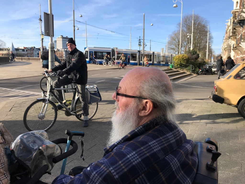 Maarten Nulle is als verkeersontwerper verbonden aan de werkgroep. Momenteel is hij onder meer druk met de kruising Insulindeweg-Zuiderzeeweg, het kruispunt net voor de opgang van de Amsterdamsebrug. “Best een ingewikkelde situatie daar”, laat hij op een uitgevouwen tekening zien. “De tramlijn buigt bijvoorbeeld af naar rechts richting het Flevopark, over het fietspad heen. En we zien ook dat veel fietsers vanaf de Zeeburgerdijk dwars oversteken, wat de kortste maar ook een gevaarlijke weg is. We zijn nu aan het kijken of we het fietspad zo kunnen vormgeven dat de meest veilige weg ook de aantrekkelijkste wordt.” En zo zit hij rustig te puzzelen, boven de tekening of ter plaatse.