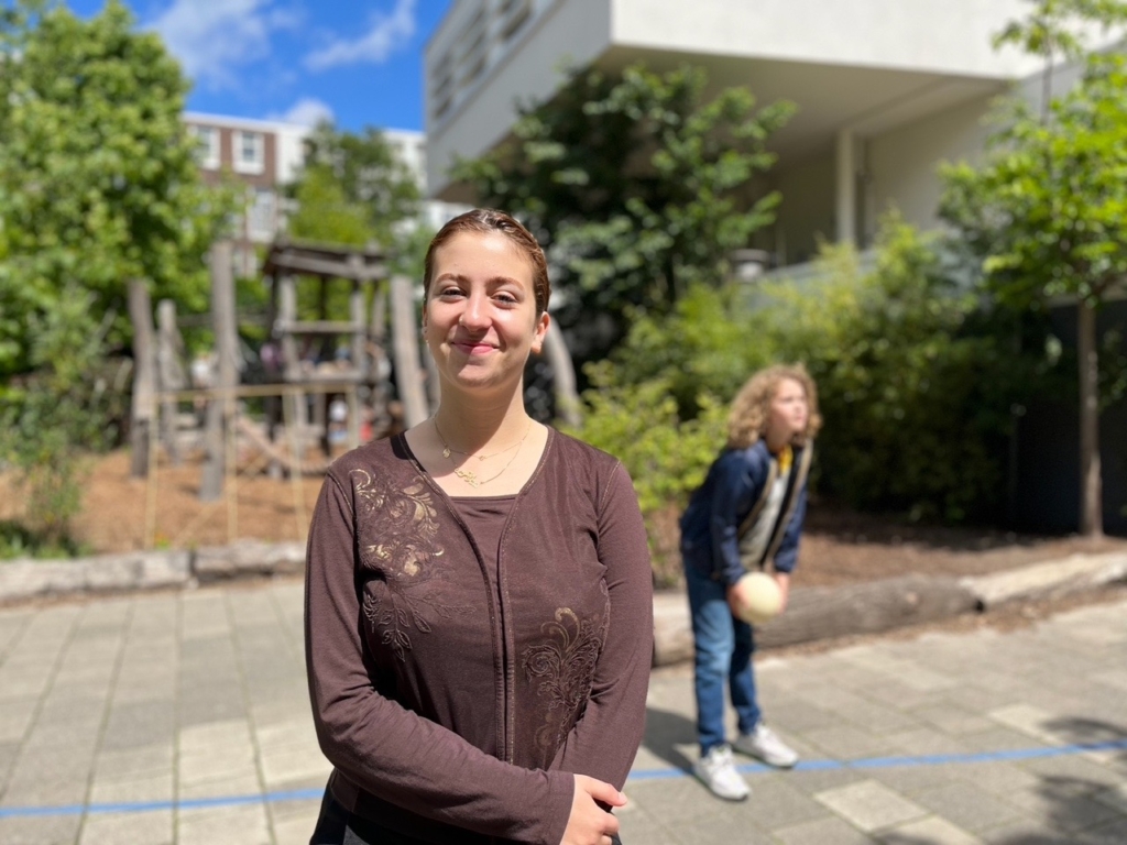 Sarah-Noor is een van de vrijwilligers die assisteert in de tussenschoolse opvang van de Dr. E. Boekmanschool. De school ligt direct tegenover het universiteitsgebouw waar zij dagelijks voor haar studie moet zijn. “Ik hoef alleen maar even over te steken voor m’n dienst,” zegt ze lachend. “Aanvankelijk dacht ik, leuk om wat bij te verdienen in de pauze, maar je bouwt zo snel een band op met de kinderen en je collega’s dat ik er nu echt vooral om die reden kom werken.”
