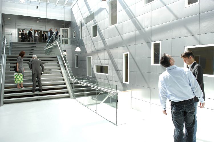 “We beginnen onder de grond,” zegt een trotse Nico, “daar is onze fietsenkelder. Er kunnen ruim 800 fietsen gestald worden.” Omdat de school gebouwd werd in combinatie met wonen (op een deel van het dak verrijzen 23 huurwoningen van Ymere) konden de kosten voor de ondergrondse garage worden gedeeld. “Die fietsen hadden anders op de buitenruimte gemoeten.”