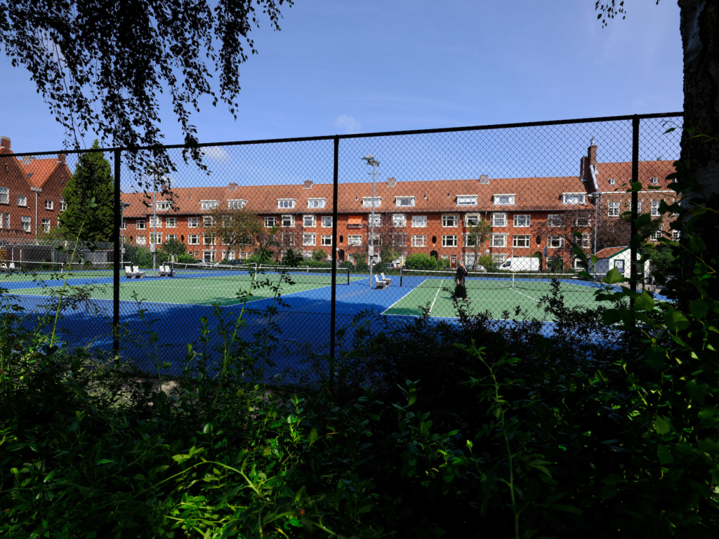 Dilemma’s rond openbaar groen in de verdichtende stad. Wat is de gedragscode, nu steeds meer stedelingen dezelfde vierkante meters willen gebruiken? Waar precies ligt de grens tussen publiek en privaat – en wie mag die trekken? Sportparken horen net als volkstuinen, stadsparken en recreatiegebieden tot de openbare hoofdgroenstructuur van de stad. In de twintigste eeuw ontstond een scherpe functiescheiding tussen wonen en verpozen. Monofunctionele sport-, volkstuin- en stadsparken op ruime afstand van de bewoonde wereld. Nog altijd zijn veel Amsterdamse groengebieden omsingeld door sloten, hekken en ophaalbruggen. Er is hooguit plaats voor wat verenigingen die het groen laagfrequent en enkelvoudig gebruiken. In de steeds drukkere stad is dat monofunctionele gebruik niet meer van deze tijd – behalve op een begraafplaats. In Oost zag je de verandering voor het eerst. Alweer een jaar of twintig geleden werd Sportpark Middenmeer gecombineerd met een woonwijk. Radioweg, Middenmeerpad en Wembleylaan kregen een doorgangsfunctie.