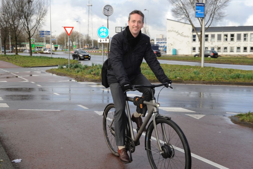 Want elke ochtend, als hij vanuit Weesp richting Amsterdam fietst ziet hij dat lange lint van auto’s. “Dan denk ik: mensen, wát zonde.” Vaak gaat het om afstanden die echt niet per auto hoeven worden afgelegd. “Het is gewoontegedrag. Als je eenmaal hebt ontdekt hoe fijn en makkelijk het is om te fietsen, hoef je bovendien niet ook nog ’s aan sport te doen. ’s Avonds en in het weekend heb je dan echt vrij.”