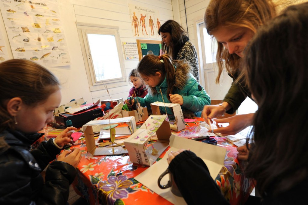 Dus nu komen de studenten hier twee keer per week samen in het hoofdgebouw, waar een paar bankstellen van grootmoeder en een zelf getimmerde bar voor gezelligheid zorgen. De kinderen van Oost kunnen met de studenten elke woensdag- en zondagmiddag uilenballen ontleden, ‘smemory’ doen (memory met je neus) of deelnemen aan een GPS-speurtocht.