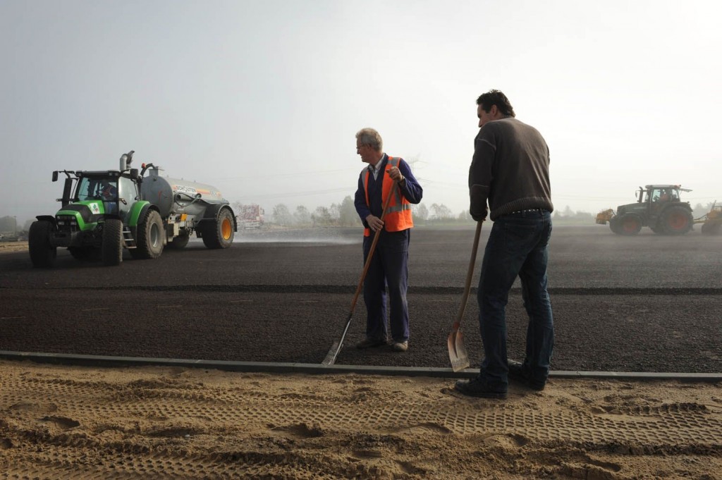 De milde herfst biedt voordelen. Bijvoorbeeld dat het kunstgras voor het extra voetbal- en hockeyveld in het Diemerpark al per donderdag 25 oktober gelijmd kan worden. Een meevaller, want deze klus loopt als het weer tegenwerkt (het moet 15 graden zijn) soms maanden vertraging op. Eerst wordt het voetbalveld gelijmd, kort daarna volgt het hockeyveld. Over vijf weken kan het klaar zijn. Dan moeten alleen nog hekken geplaatst en paden gelegd.