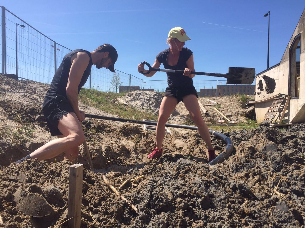 ‘Als jij direct na schooltijd komt helpen afgraven en egaliseren, kunnen ze onder het gemaal straks al beton storten. Je móét komen helpen.’ Een appje van de man, die zelf geplaagd wordt door een lamme heup. Het is 1 april en ik denk eerst dat hij een geintje maakt. Kom zeg, ik heb wel wat beters te doen en bovendien heb ik gisteren nog een geul gegraven voor de pijpen van Nuons stadswarmte. Ik spitte over vijf meter tot grondwaterniveau en ben daar nog niet helemaal van hersteld.