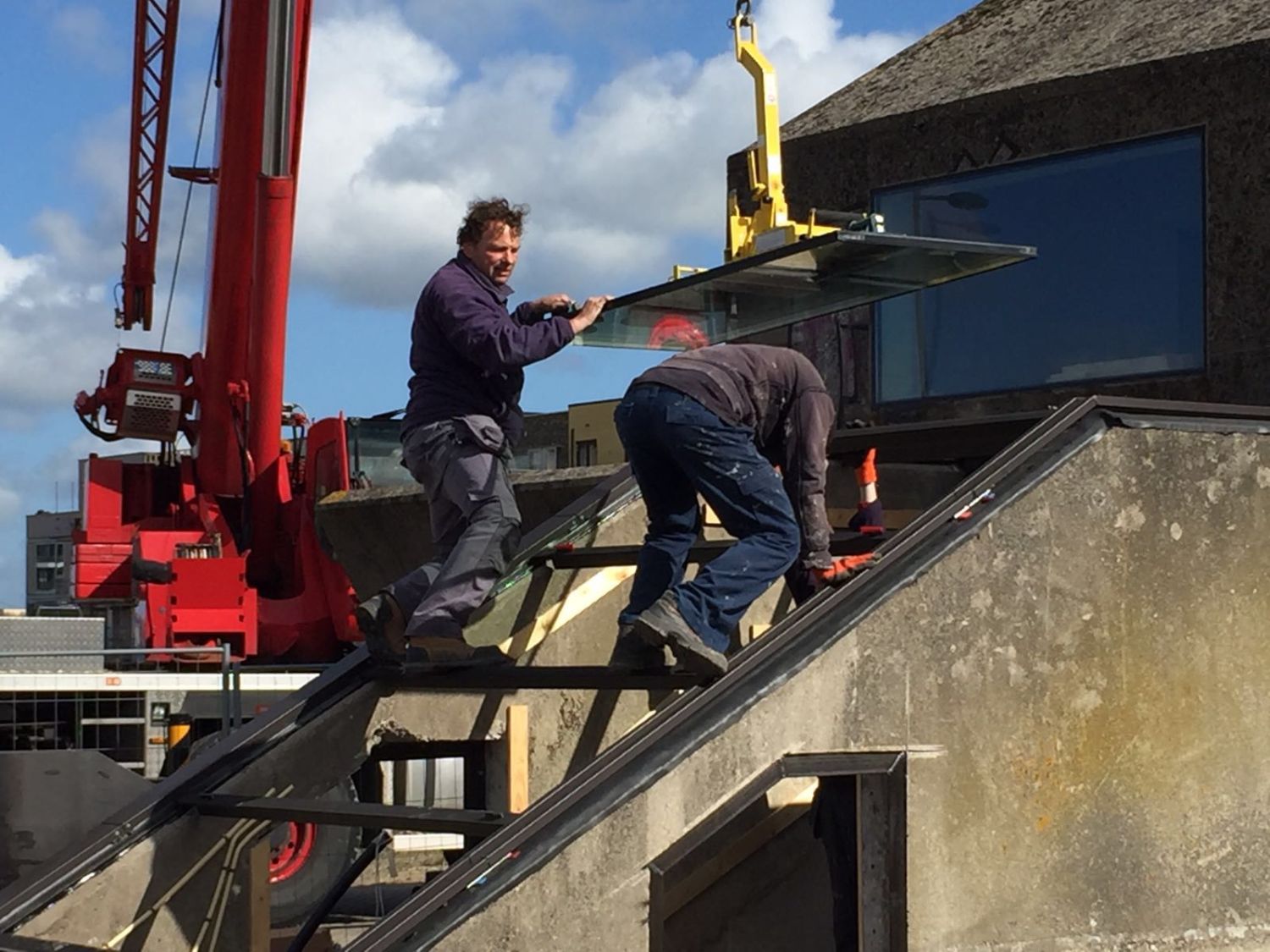 Een dak! Een dak! We hebben een dak. Een echt dak, van glas en staal. En het is mooi man. Meer zeg ik daar nu niet over, kom zelf maar eens kijken.