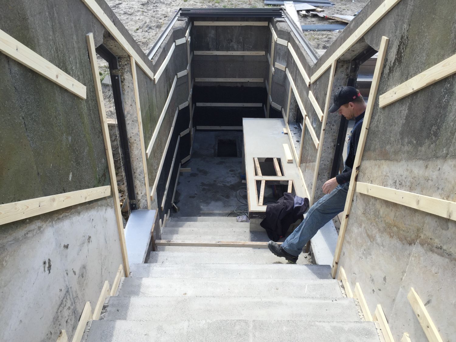 Er bleek een ‘kelder’ aan te hebben gehangen, die nu op een compleet verkeerde manier in de vers gestorte cementvloer is gesijpeld. Die kelder, moet je weten, is een van de ludieke vondsten van de man, een van zijn paradepaardjes, die hij beter bewaakt dan zijn eigen kinderen.