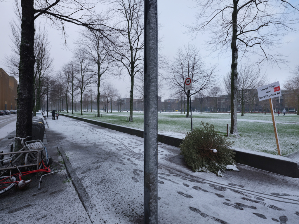 Lijken langs de straat, het is geen lekker begin van het jaar. De goede bedoelingen daargelaten bewijst het toch weer hoe de mens als enige soort meer neemt dan hem toekomt. Het telen duurt zeven tot elf jaar, in de volle aarde, en daarna zagen we ze bij de enkels af, hangen er ballen en slingers in alsof het lelijke dingen zijn, laten ze een tijdje verdrogen en slepen ze de deur uit, lamenterend over het door onszelf veroorzaakte spoor van naalden. De goede bedoeling is dat de stad duizend verzamelplekken heeft ingericht om ze met grote lijkwagens naar een verantwoord destructiebedrijf te brengen dat ze tot compost maakt, die eventueel te gebruiken is om in zeven tot elf jaar nieuwe slachtoffers te kweken. Maar zelfs daar zijn ze niet veilig, de vlammen slaan er alweer uit en de geur van vernietiging blijft daarna nog weken hangen in verschroeide fietsen en lantaarnpalen; zo moet het geroken hebben in de middeleeuwen na een heksenverbranding.