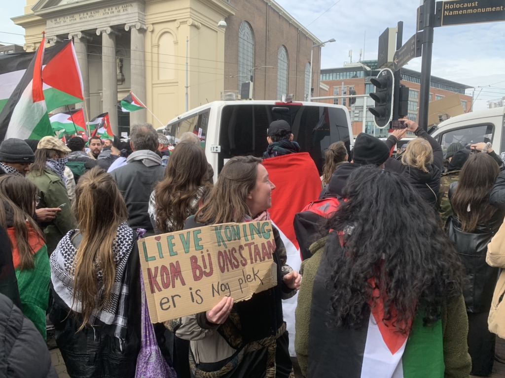 Als koning Willem-Alexander vertrekt bij het museum joelen pro-Palestijnse demonstranten hem opnieuw uit. Hij heeft begrip voor hen, kijkt terug op ‘een hele bijzondere dag’ en benadrukt dat de focus bij het Holocaustmuseum moet liggen. “Het is fantastisch dat we kunnen demonstreren. Tijdens de Holocaust mocht dat niet, dat was onderdeel van de oorlog. Ga vooral allemaal kijken in dit museum hoe verschrikkelijk de Holocaust is. Dit mag nooit meer gebeuren.”