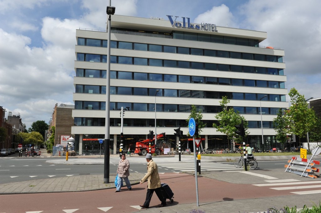 Abeltje 2.0 leidt me naar de 7de verdieping. Zaklamp in de hand, want het licht werkt niet. Volkshotel is nog niet helemaal af. Dat betekent voor nu geen pin, geen sigarettenautomaat of bordje naar de wc. Deze triviale gemissen vergeet je snel als je binnenstapt en zowaar een déjà vu ervaart… Tien jaar geleden, Club 11. Onvergetelijk. De gelijkenis is geen toeval, dezelfde interieurdesigner. De dames van de organisatie zijn blij: “Het is mooi. Niet te gelikt, nog steeds rauw.” In hun stemmen klinkt perfectionisme door. Volkshotel is tot in de puntjes uitgedacht, een kijkje in de kamers verleidt mij direct tot het boeken van een weekendje. Terwijl ik aan de overkant woon.