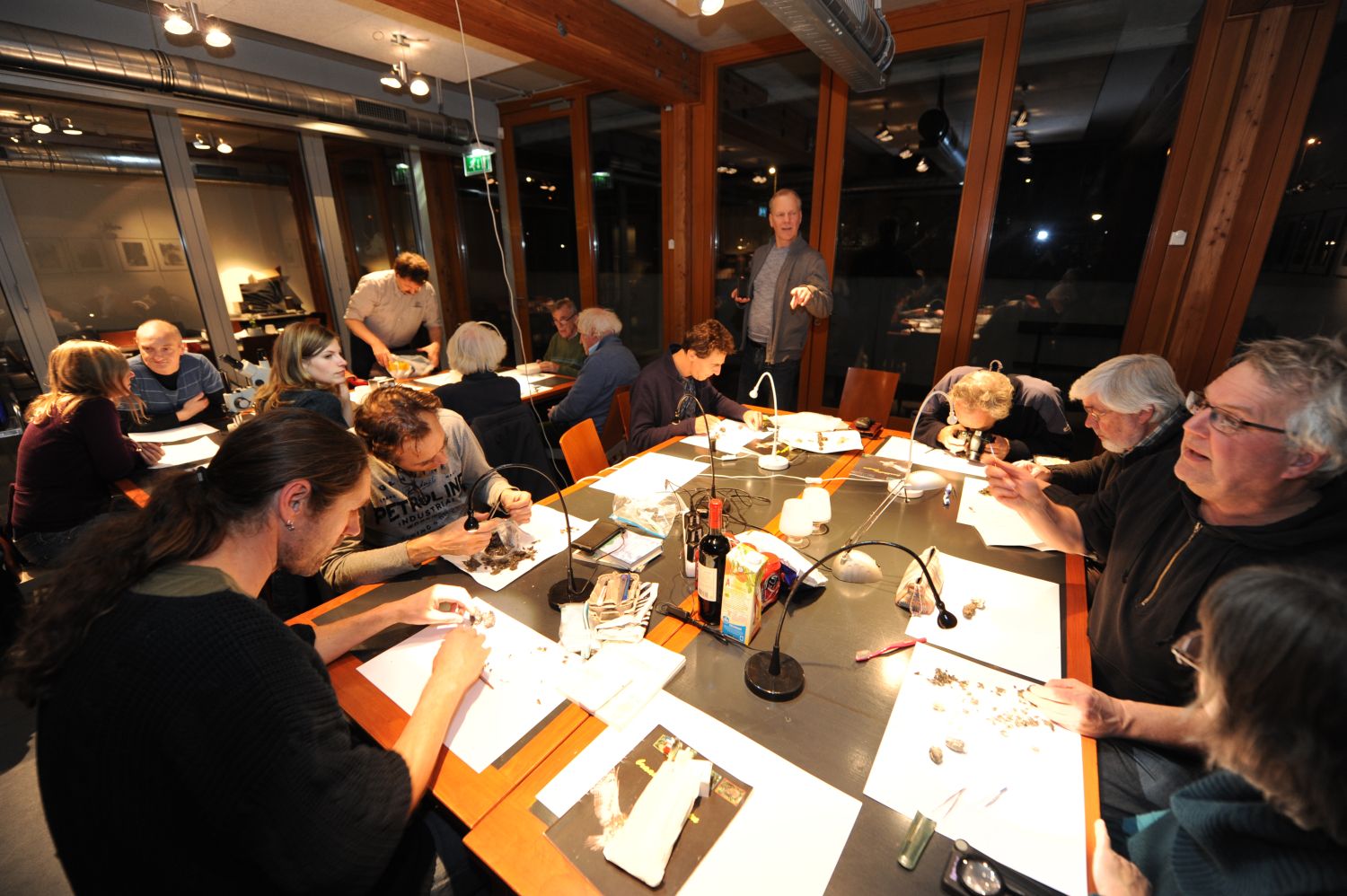 Het is even na achten ’s avonds en zestien deelnemers – voornamelijk leden van de KNNV, maar ook enkele andere geïnteresseerden – zitten in de kantine van De Nieuwe Ooster geconcentreerd over hun uilenballen gebogen.