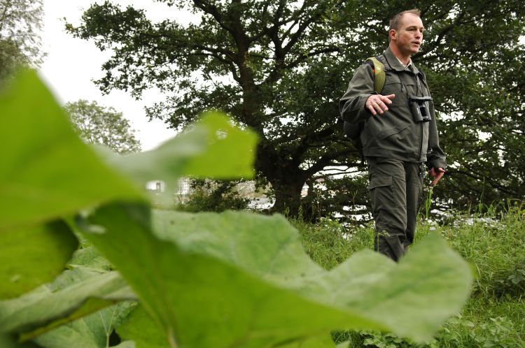 Aan de begroeiing in de Diemervijfhoek is geen mensenhand te pas gekomen. Alles kwam vanzelf… de wilgen, de elzen en ook de oude eik waar boswachter Visser bij staat.