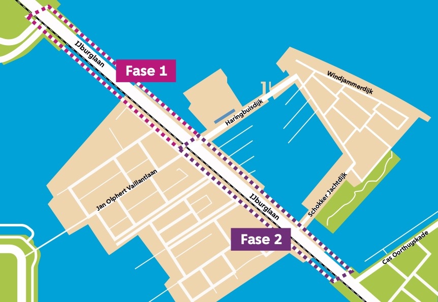 Tussen de afslag A10 en het eindpunt krijgt de IJburglaan een nieuwe laag asfalt. Om de wijk bereikbaar te houden wordt het werk verdeeld in twee fases. Fase 1 staat gepland vanaf 20 juli en duurt zo’n zes weken, tot 31 augustus. Fase 2 loopt naar verwachting tot ongeveer 21 september.