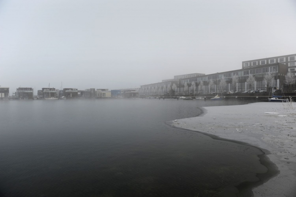 Als architectuurcriticus van de Brug kijk ik permanent om mij heen, op zoek naar een onderwerp voor mijn column. Tegen de tijd dat de deadline nadert begin ik onrustig te worden. De gebouwen raken op. Mislukte gebouwen genoeg, maar daar schrijf ik niet graag over. Voor je het weet kom je de architect die je te kijk hebt gezet tegen in de supermarkt, of sta je met elkaar op een schoolborrel. En de architectendichtheid op IJburg is hoog, zeker op Steigereiland. Het idee voor een onderwerp van mijn column komt altijd op een ochtend, vlak voor de deadline. In dit geval stond ik met mijn rug naar de Montessorischool Steigereiland, zojuist mijn dochter afgeleverd. Over het halfbevroren binnenwater van Steigereiland Noord scheen de zon prachtig op de rij garagewoningen aan de haven.