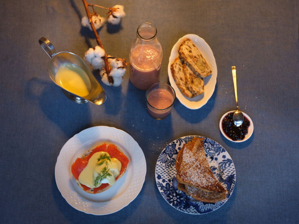 Kerst is het ultieme uitslaapmoment. Maar stel dat je Eerste of Tweede Kerstdag toch om 7 uur opstaat, bijvoorbeeld omdat je baby je heeft wakker gehuild of je je hond moet uitlaten. Of omdat je wil zien hoe Oost ontwaakt met Kerst (aanrader, mensen). En je maakt dan een flinke wandeling, over de Weesperzijde, Borneo-eiland of langs het Nieuwe Diep. En je komt verkleumd en moe maar voldaan thuis. Dan wil je een goed ontbijt. Zoiets als dit bijvoorbeeld. (Ook zeer geschikt na een uitslaapsessie, trouwens.)