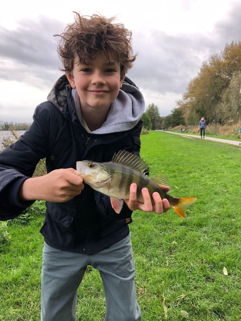 Belangrijke reden voor Max en Dex om te vissen is het buiten zijn. “Veel kinderen brengen per dag nog geen uur buiten door en zitten uren achter hun spelcomputer. Wij zijn graag in de open lucht.” Als de snoek is teruggezet veranderen de jongens van plek om opnieuw hun hengel uit te slaan. Ditmaal heeft Dex prijs met een baars en maakt Max de foto.