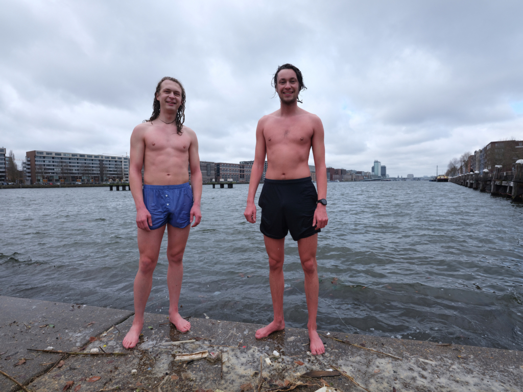 Foto: Max Laboyrie (21, rechts op de foto) met zwemkameraard Henk Schaapman).