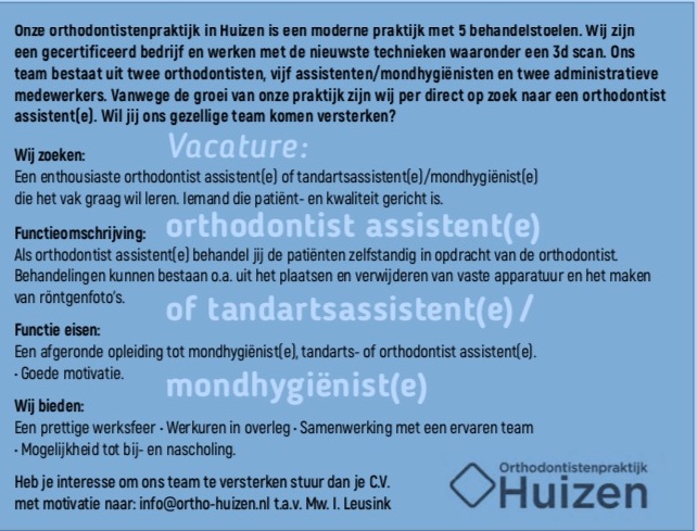 WannaFlex zoekt accountmanagers, Intra Metals zoekt commercieel/administratief medewerkers, Orthodontistenpraktijk Huizen zoekt een orthodontist assistent, tandartsassistent en een mondhygiënist.