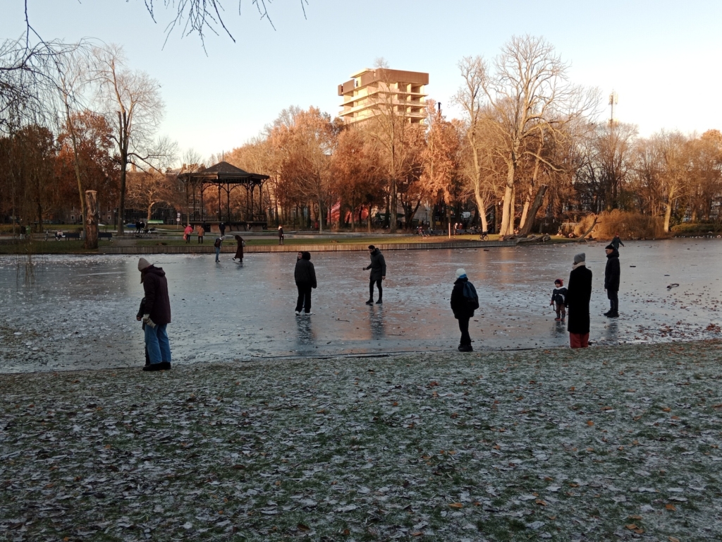 Voordat het meeste natuurijs betrouwbaar is moet het meerdere nachten minstens vijf graden vriezen. In Amsterdam duurt dat langer omdat de temperatuur van het (grachten)water hoger is. Komt bij dat hoog water langzamer bevriest. Door pompende gemalen die het hoge waterpeil van de afgelopen weken tegengaan, is de stroming dit jaar sterker. Ook dit vertraagt bevriezing.
