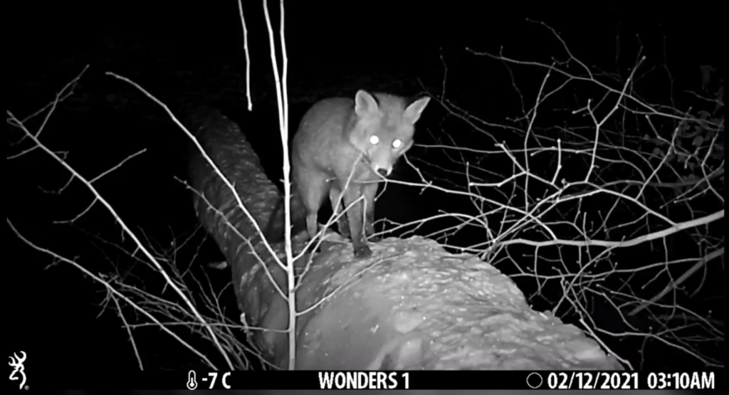 Biologen Koen Wonders en Atze van der Goot legden de vos met een nachtcamera op film vast. “We hadden al sporen gezien,” vertelt Koen. “Pootafdrukken. Eigenlijk hadden we de camera opgehangen om de marter te filmen die soms op de Joodse begraafplaats wordt gezien. We weten niet of het om een hermelijn of een wezel gaat, want het grootste verschil tussen die twee is dat de hermelijn een donkere staartpunt heeft.”