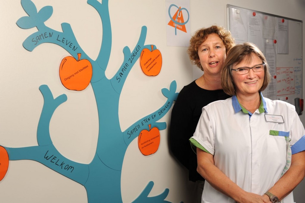 “Dit is het huis van onze bewoners, de medewerkers zijn hier gasten.” Voor Irene Dammers, teamleider en verpleegkundige van verpleeghuis De Open Hof in de Fahrenheitstraat, zijn de verhoudingen glashelder. Als ze binnenkomt in het appartement van een bewoner, dan is ze daar op bezoek. Heel anders dan in het ziekenhuis waar Dammers jarenlang heeft gewerkt. “In het ziekenhuis is iedereen tijdelijk. Je hebt slechts kort contact met patiënten. Er ging dan ook een wereld voor me open toen ik in het verpleeghuis kwam werken. Ouderen wonen hier en dat is een groot verschil.”
