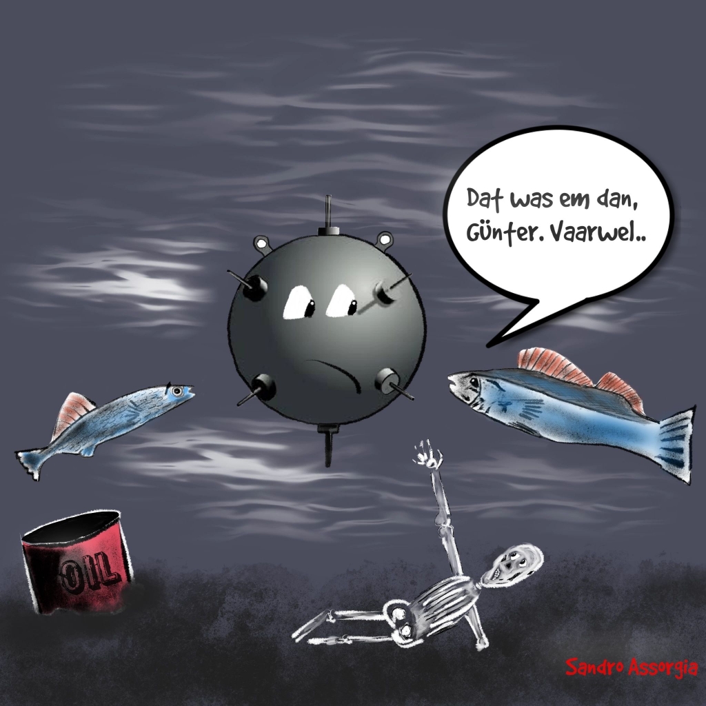Baggeraars deden onlangs bij Java-eiland een opmerkelijke vondst: zij haalden een Duitse zeemijn uit het IJ. Na foto’s te hebben gemaakt legden ze het explosief uit de Tweede Wereldoorlog voorzichtig terug op de bodem. De omgeving van het Azartplein werd uit voorzorg tijdelijk afgezet. De zeemijn ligt op 270 meter van de kade en vormt geen acuut gevaar. De vondst is gemeld bij specialisten van Defensie, die de bom met behulp van sonar hebben gelocaliseerd.